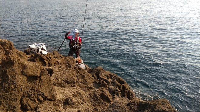 そのうちに撒き餌に反応したイスズミが辺り一面、海面まで群がるようになり大苦戦です。