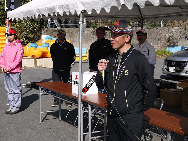 2013年4月13日: 第1回 ヤイバ磯祭り レポーター:大木 朗 《 全参加者 》 レポート 第一回ヤイバ磯祭りが4月13日(土)南伊豆妻良沖磯一帯にて開催されました。 朝のうち西風そしてうねりが残り、出船時間を30分遅らせてのスタートでした。 この日は、潮色がとても悪く“通称:菜っ葉(なっぱ)潮”、 また水温低下と言う状況魚の反応もとても鈍かったです。 しかし、この大会に参加して頂いた皆さんの中にはしっかりとメジナを釣り上げ 大会を盛り上げて頂きました。 台湾から2名の参加者に加え、閉会式・表彰式では釣りガールの石川文菜ちゃん (ぶんチャン)が運営のお手伝いをするため駆け付けてくれました。 今回ヤイバ磯祭りに参加して頂きました皆さん本当に有難うございました。 ささめ針様ありがとうございました。 そしてヤイバスタッフの皆さん大変お疲れ様でした。 事故なく安全に磯渡しをしてくださった「五兵衞丸」「市丸」さん。 無事に終了した事にとても感謝しています。 港にて選手の帰港待ち 入賞おめでとう 神保インストラクターからインタビュー 優勝〜出雲さん 李さんの通訳 運営:ささめ針の土屋さん ウルフシリーズ 製品紹介 @ 試作スカリ 新・大型トランクケース ぶんチャン! 台湾から〜劉さん・王さん 静岡支部長:大木 神奈川支部長:斎藤さん 東京支部長:池角さん 千葉支部長:澤田さん 横まぐからの参加者 Copyright(C) 横浜真ぐれ会(SINCE 2000.) No.2015 All Rights Reserved. Design by Akira.O